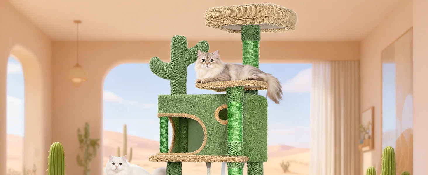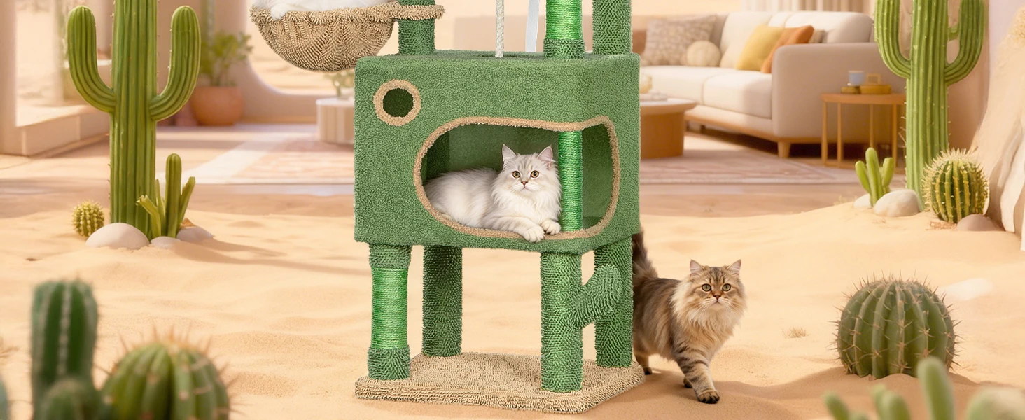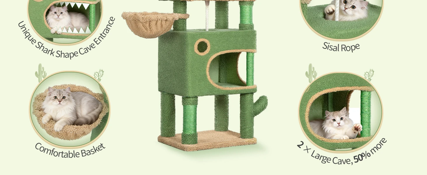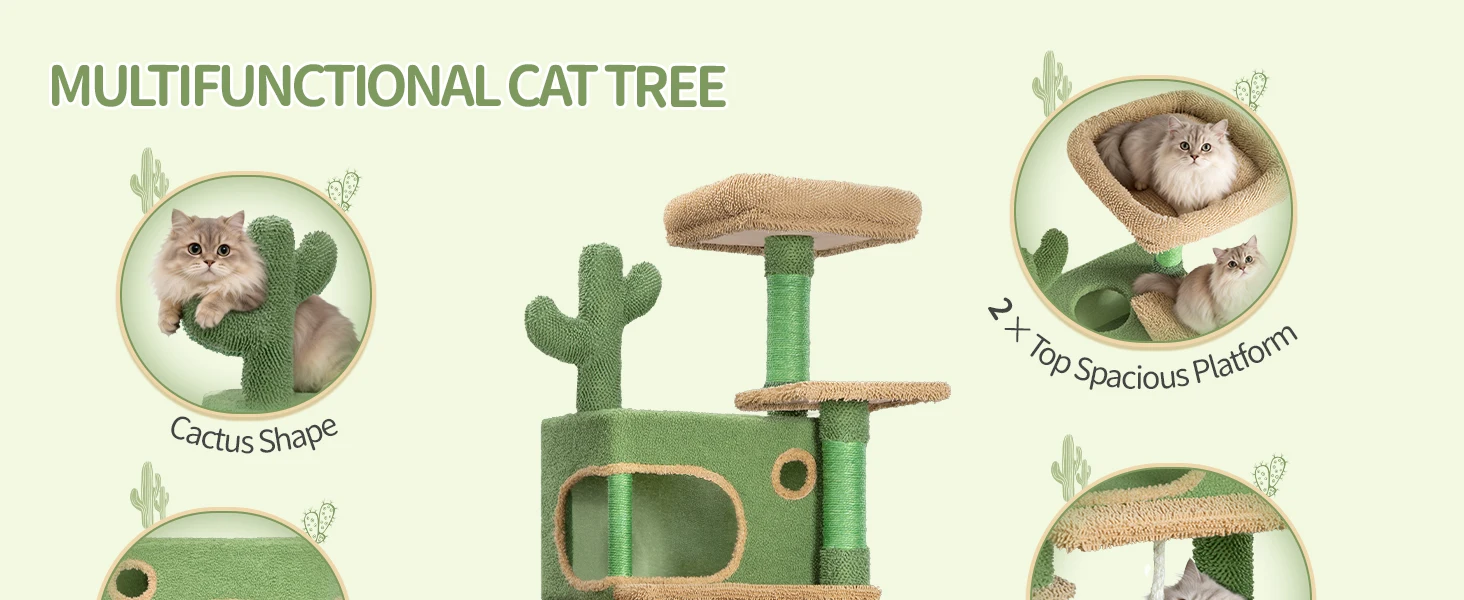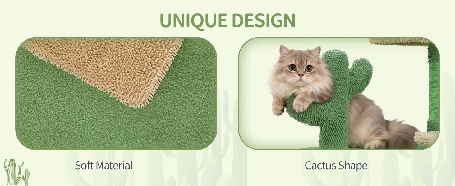 【Design Cactus Unique】Inspiré d’un véritable cactus, le tissu peluche vert et marron crée une texture naturelle ; cet arbre à chat n’est pas seulement un excellent terrain de jeu pour les chats, mais aussi un élément décoratif qui s’intègre parfaitement dans un intérieur moderne et verdoyant.