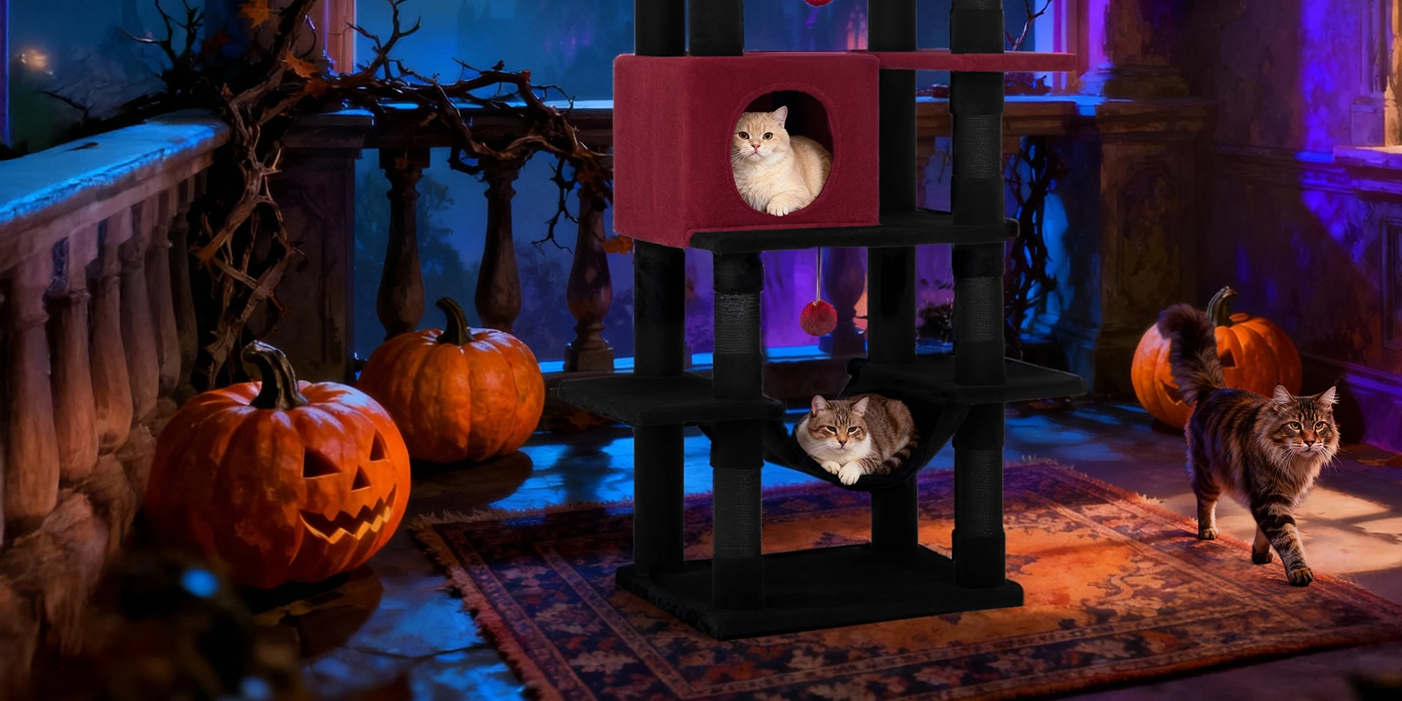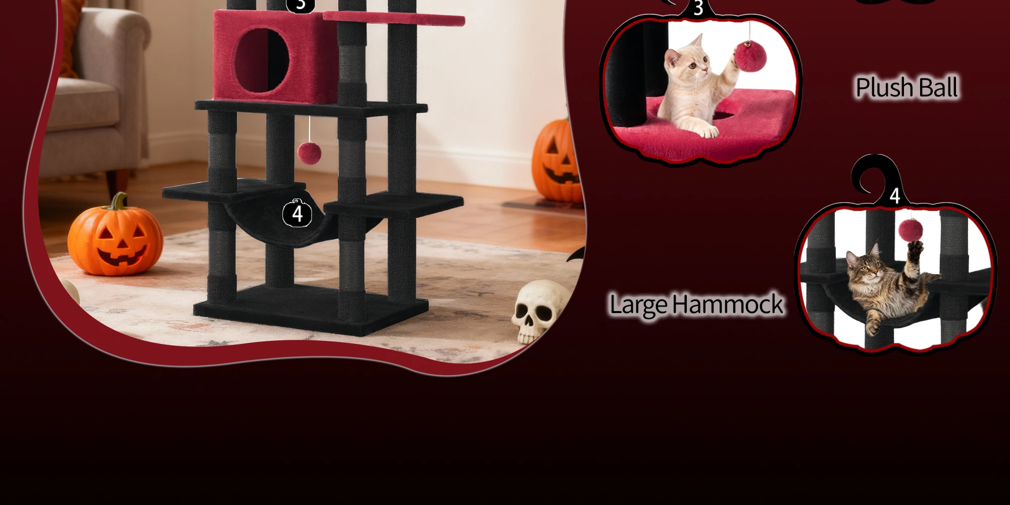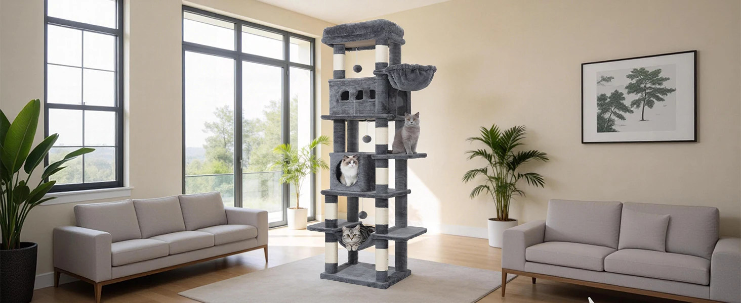 Veuillez installer la sangle anti-basculement à l’arrière pour permettre à votre chat énergique de courir et de sauter librement. Vous pouvez resserrer les vis après une période d’utilisation pour maintenir la stabilité du produit