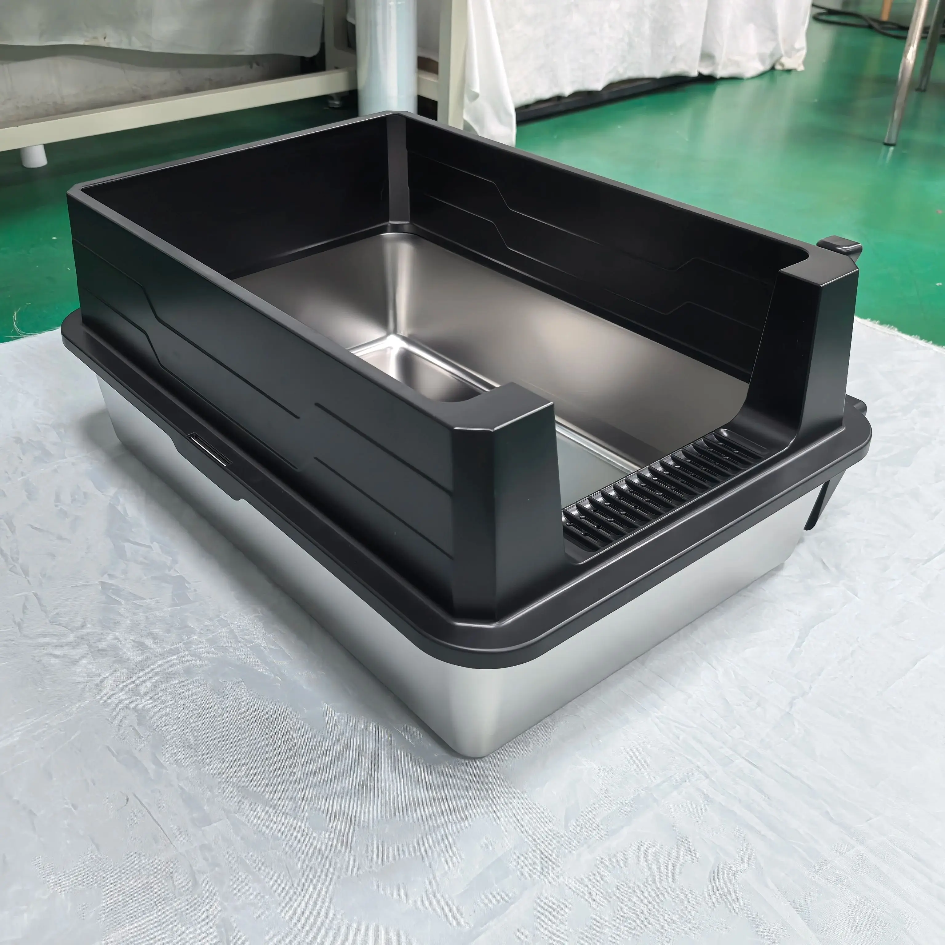 Bac à litière en acier inoxydable XXXL, bac à litière extra large en métal de 28 « de x 20 » de largeur pour grands chats et chats multiples avec côtés hauts