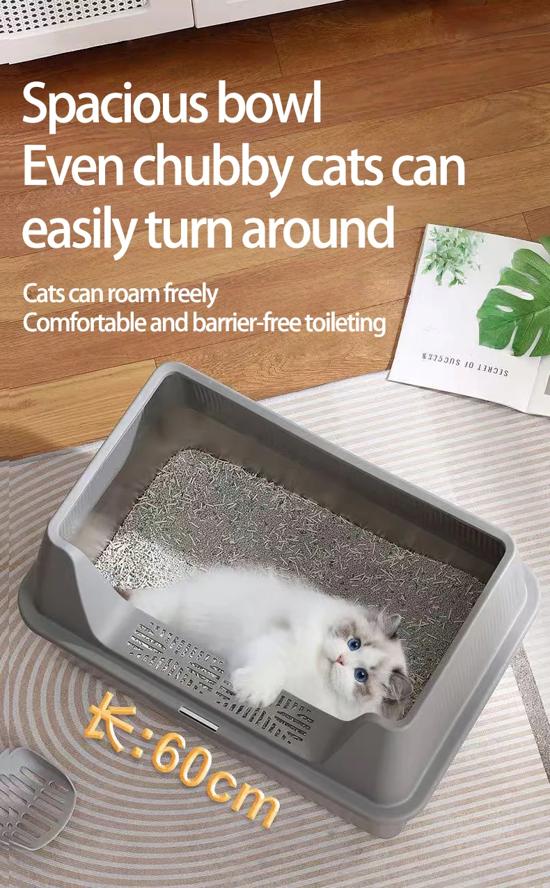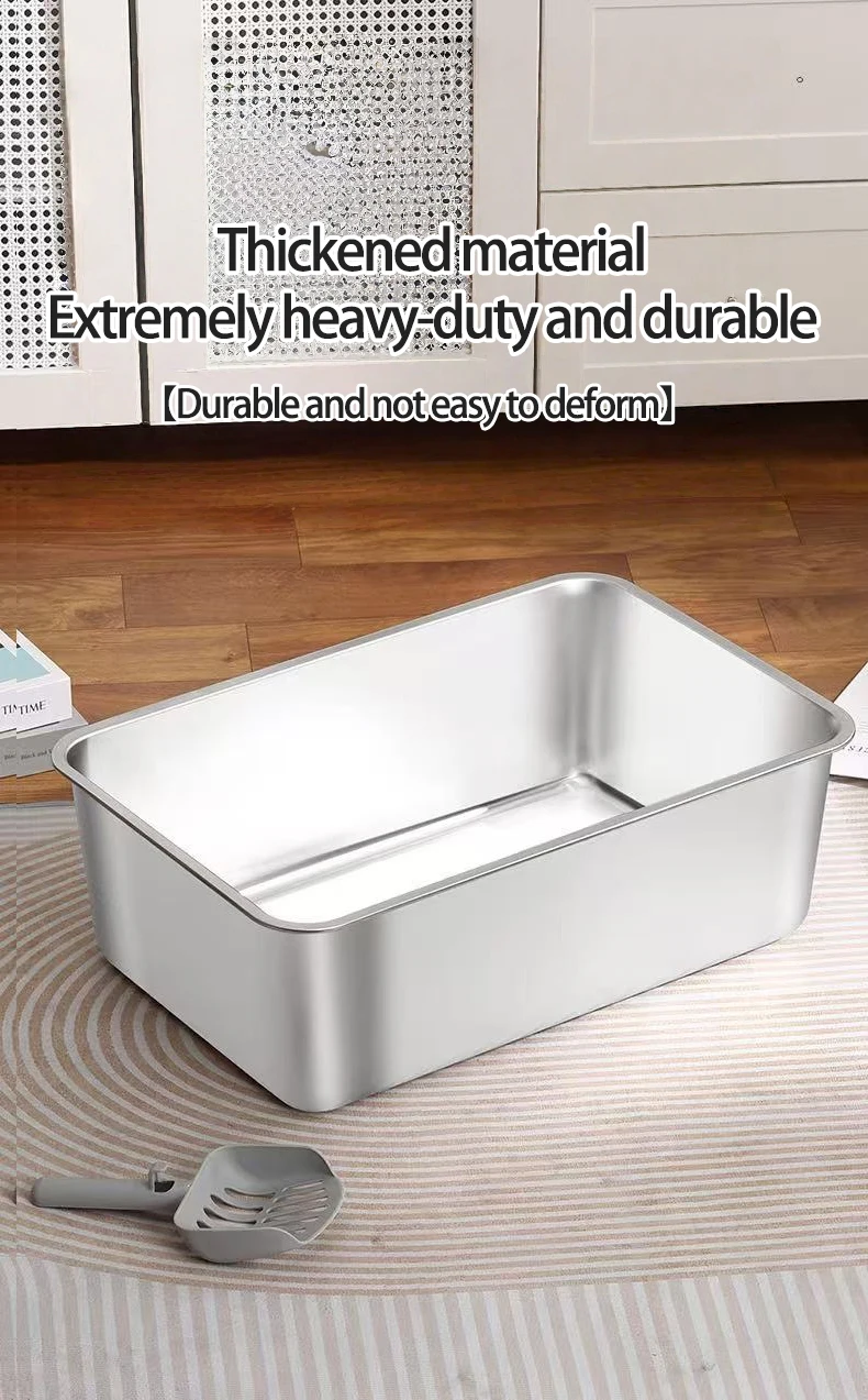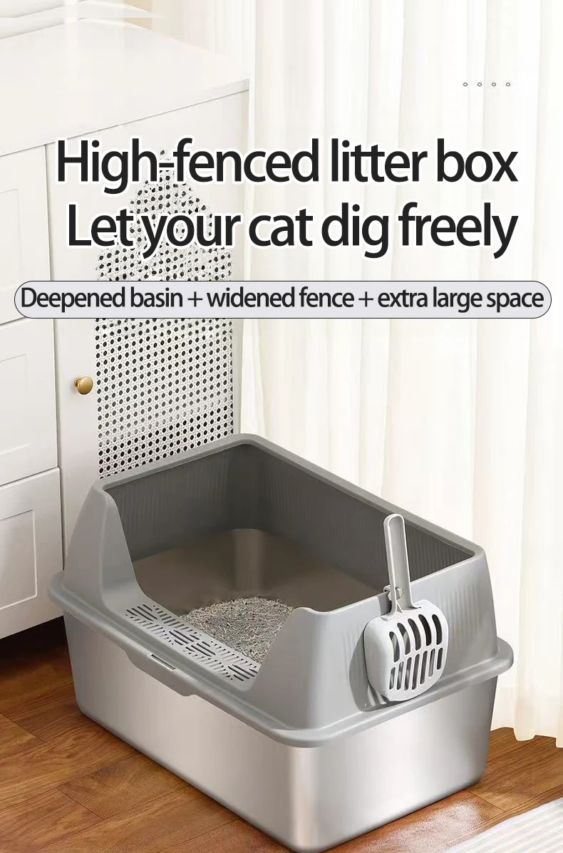 Bac à litière semi-fermé en acier inoxydable, anti-éclaboussures à haute clôture, facile à nettoyer pour les produits de nettoyage des animaux de compagnie des chats gras