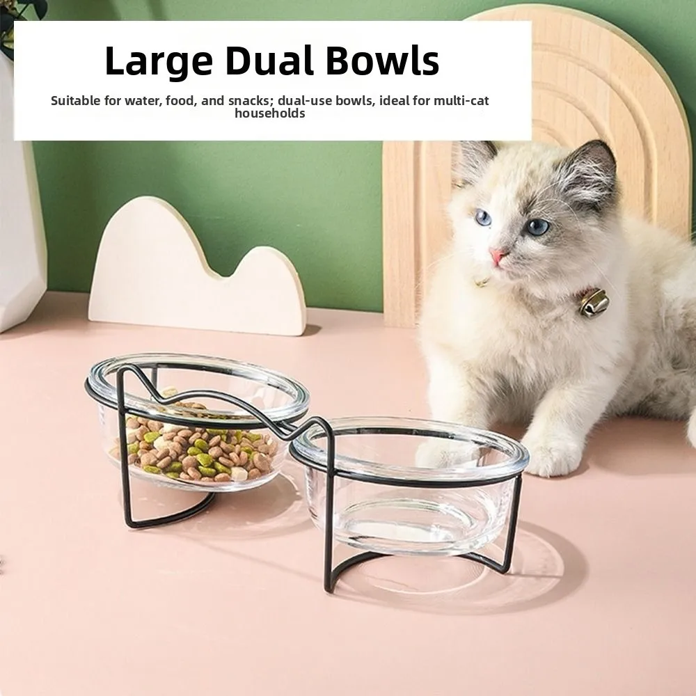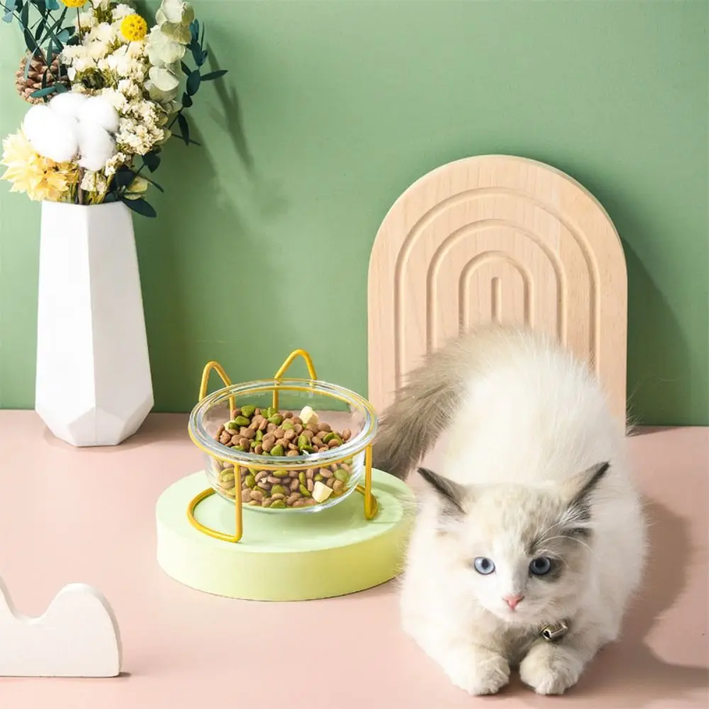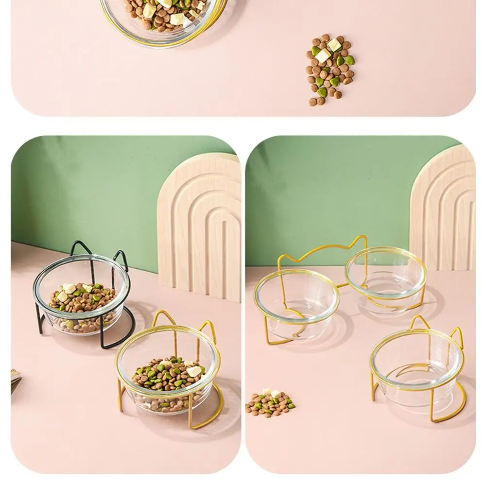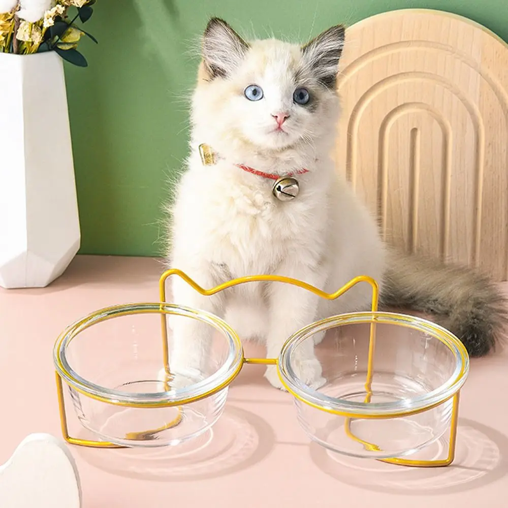 Bol en verre double paroi pour chat et chien avec support en fer doré surélevé, gamelle d’eau surélevée, accessoires pour animaux de compagnie, chat et chien