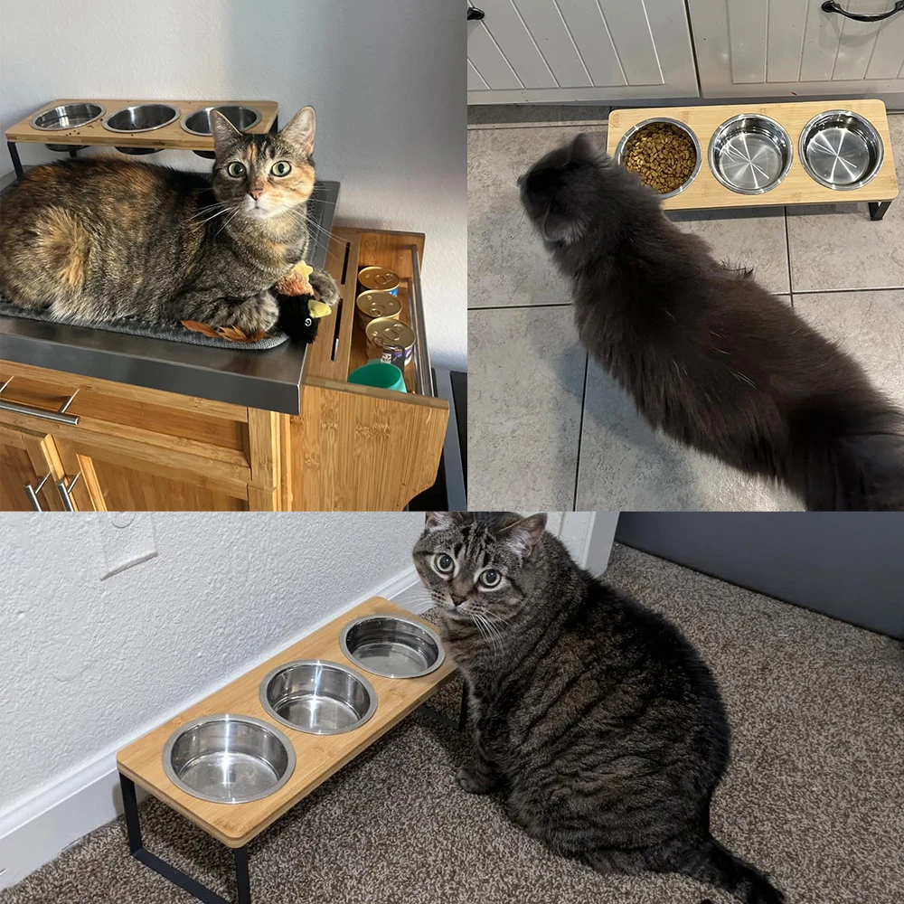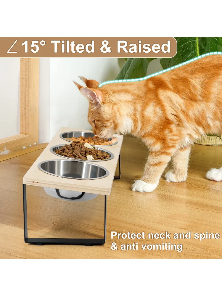 Bols surélevés pour chats avec 3 bols en acier inoxydable 15 ° Bol de nourriture pour chat incliné anti-vomissement, surélevé, pour petits chats, chiots, accessoires