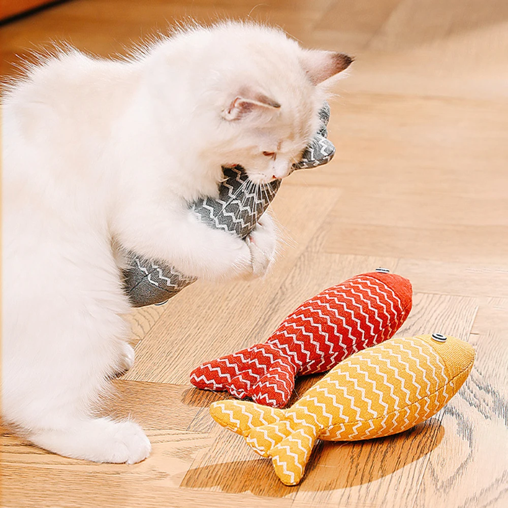 Jouet pour chat en toile de jute en forme de poisson, amusant et interactif, avec herbe à chat intégrée, pour la grignotage et le divertissement des chats