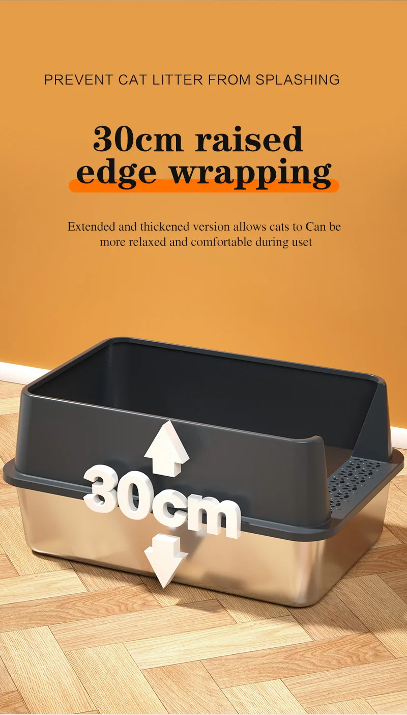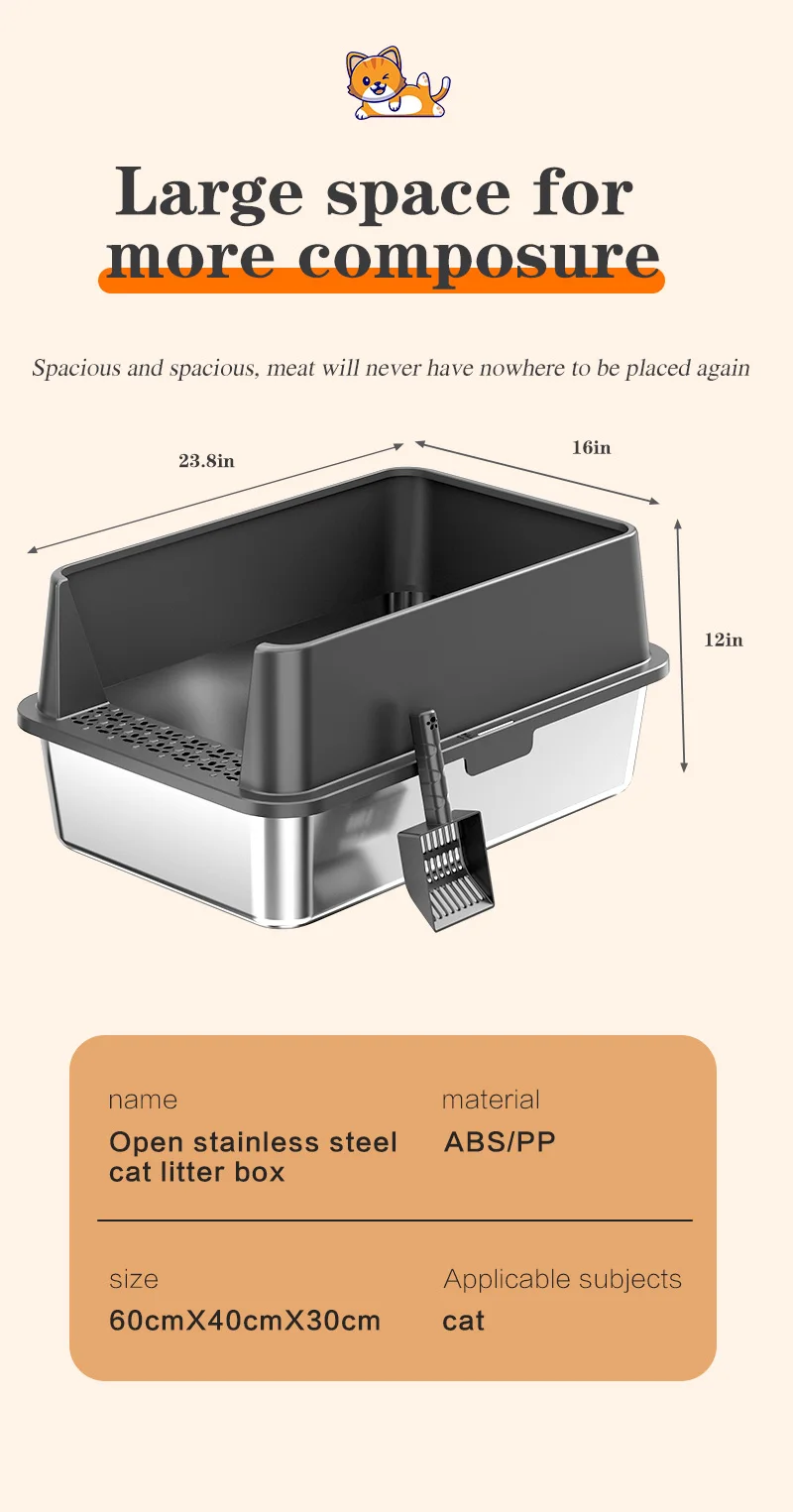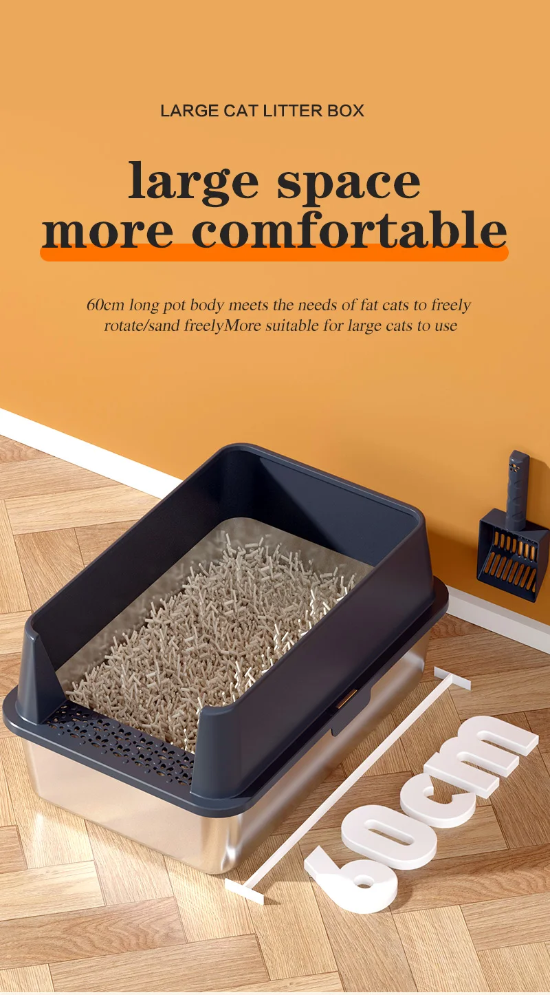 Paquet de 2 bacs à litière pour chat extra large XL en acier inoxydable avec couvercle bac à litière en métal pour chats grands et chats multiples