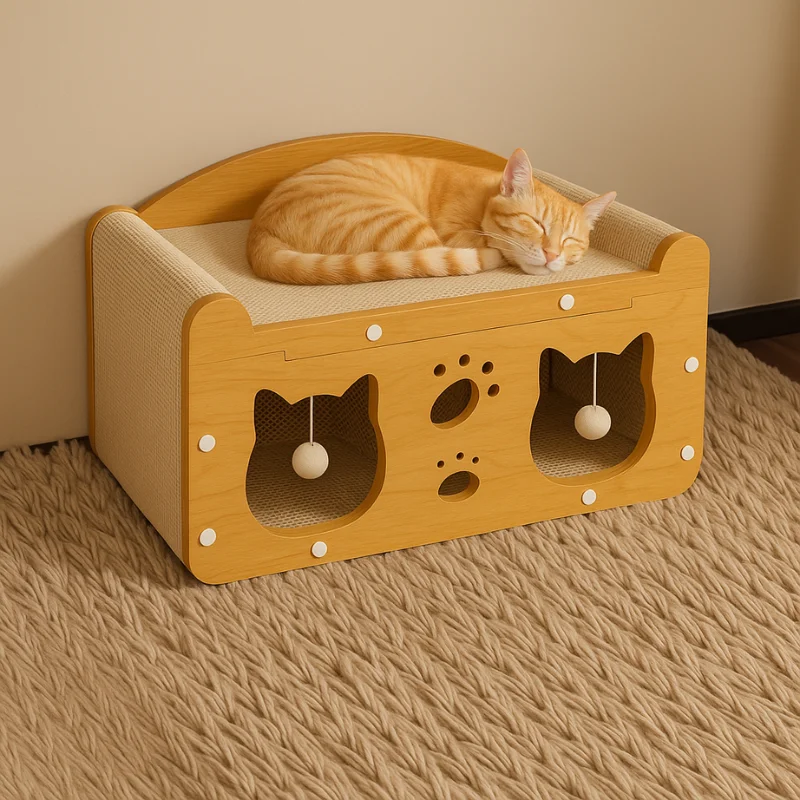Cette planche à gratter pour chat 2 en 1 combine un griffoir avec une zone de repos confortable, offrant de multiples avantages à votre ami félin.